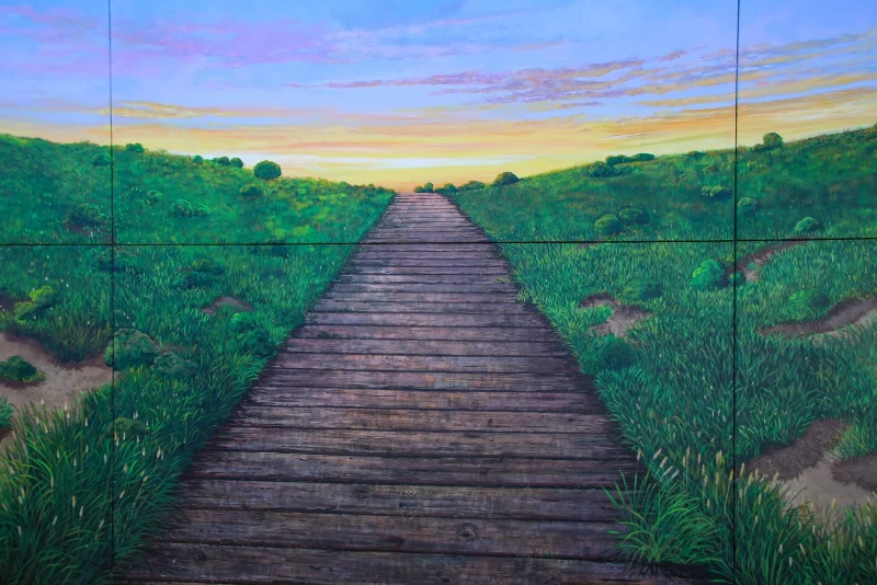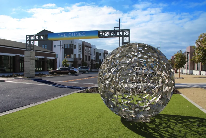 Promenade at The Dunes is the heart of a contemporay coastal village anchored by a movie theater and Central Park at one end, and a specialty grocer at the other. In between, visitors discover a series of sculptures, mosaics, murals and graphic art installations brought together to communicate the coastal narrative, connecting the natural environment and this area with its military history.